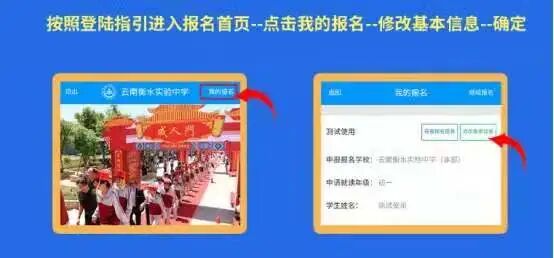 第五步:選擇登記校區,填寫基本信息并提交(報名學校填寫:云南衡水實驗中學西雙版納校區)