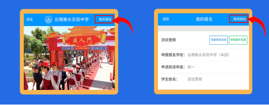 家長可以使用同一賬號給多個孩子預登記,按照登陸指引進入報名首頁——點擊我的報名——點擊繼續報名。